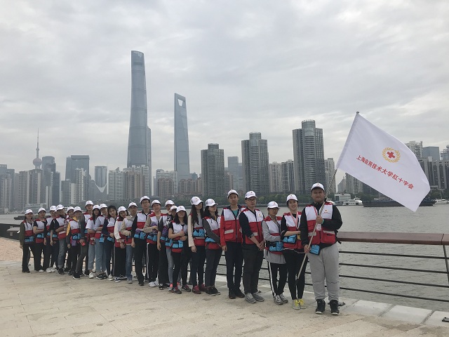 校红十字会组建了40名志愿者领跑团,代表学校参与此次健走活动,30名志愿沿外滩主会场向终点老码头出发,10名志愿者从主会场至人民英雄纪念塔沿线健走。参与健步走的我校红十字会志愿者统一着装列队整齐的行进在队伍中,展示着学校风采,面向广大上海市民开展了人道体验项目,进行了人道知识传播、理念宣传等工作。