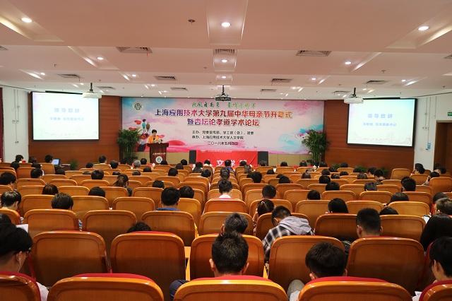 5月4日,由党委宣传部、党委学工部(处)、团委主办,人文学院承办的上海应用技术大学“凯风自南来,春晖沐中华”第九届中华母亲节开幕式暨“杏坛论孝道”学术论坛举行。校党委副书记宋敏娟,市教卫工作党委宣传处副处长江鸿波,奉贤区文广局党委委员、纪委书记李晓红,中华母亲节促进会副会长李素菊教授,我校特聘教授孙力,上海市中华母亲节促进会筹委会负责人柏怡岚,奉贤区委宣传部理论科科长张敏,我校党委常委、党委宣传部部长杨明,党委教师工作部部长、人事处处长、马克思主义学院院长李国娟,党委学工部部长、学生处处长袁翔,校工会常务副主席张淑梅,人文学院院长刘红军,党总支书记周文等出席开幕式。各学院教师代表和学生代表共计300余人参与活动。开幕式由刘红军主持。