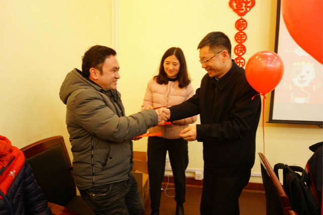 陆靖、张艳萍首先分别为到场的每位学生发放了春节慰问金、节日餐券,送上新年大礼包,并与学生们亲切交谈、共话新春佳节。