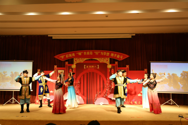 洋溢青春活力的开场舞之后,张艳萍、胡宝国、朱惠军一起为联谊活动揭春联并为全体辅导员送上诚挚祝福。联谊会节目精彩纷呈,激情澎拜的演唱、温馨感动的歌舞(曲)串烧、传统色彩浓郁的京剧表演以及诙谐幽默的相声,充分展现了三校辅导员的多才多艺。由我校辅导员排练的歌曲合唱《不忘初心 继续前进》、舞蹈《茉莉花》和《大美新疆》赢得了全场热烈喝彩。文艺会演结束后,辅导员们又参加了内容丰富、形式多样的素质拓展活动,现场气氛热烈,其乐融融。