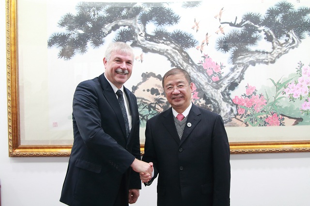 近日,校党委书记刘宇陆热情会见了来访的英国伦敦金斯顿大学外事副校长兼商学院院长罗纳德•图宁加(Ronald Tuninga)、国际事务顾问大卫•努尔(David Knull)和中国区事务负责人马子明一行。
