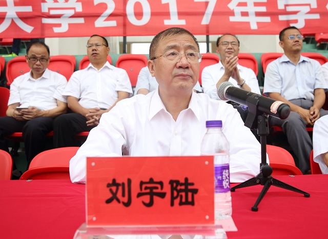 刘宇陆代表全校师生向关心和支持我校军训工作的73181部队首长和全体承训官兵表示感谢;向参加军训的全体工作人员和同学、志愿者表示慰问。他指出,在十多天的军训时间里,教官们用高标准的队列动作和高水平的训练方法精心教导同学们,发扬了部队的光荣传统,为老师们和同学们树立了学习的榜样。今天的军训会操,展现了同学们强烈的集体荣誉感和拼搏精神,为刚刚开始的大学生活交上了第一份优秀的答卷。他要求,全体同学要把军训中学到的好思想、好作风、好传统带到今后的学习和生活中去,以勤奋来磨砺意志、以坚韧不拔的精神攻克人生的艰难险阻,把自己塑造成符合伟大时代需要的合格大学生。