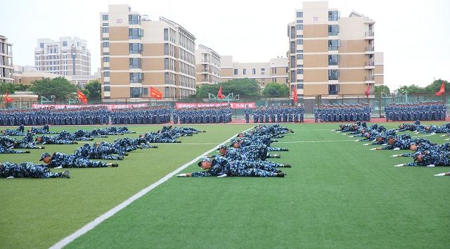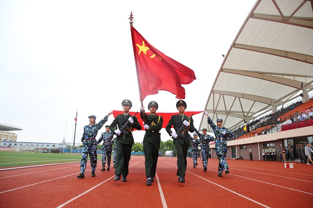 “同学们好!”“校长好!”“同学们辛苦了!”“为校争光!”的口号铿锵有力,响彻校园。随后进行了会操表演。男子捕俘拳招式娴熟,刚劲有力;女子匕首操巾帼不让须眉;侦察兵战术表演紧张刺激、扣人心弦;擒拿格斗虎虎生威,尽显男儿阳刚本色;团体操动作整齐划一。会操表演气势昂扬,赢得全场热烈掌声。表演结束后,进行了分列式表演。各方队迈着整齐的步伐,英姿飒爽地依次走过主席台,接受领导检阅。他们军容严整、口号嘹亮,充分展示了经过军训洗礼的新一届上应学子朝气蓬勃、奋发向上的精神风貌。