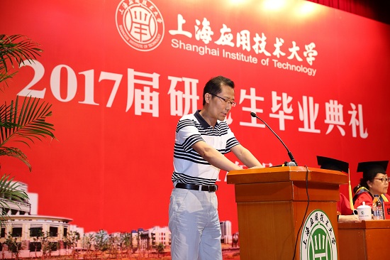 机械学院张而耕副教授作为导师代表发言,他表示,个人品质和学术钻研精神是研究生最重要的品质,毕业生们走上社会后要踏实勤奋地工作,要学会做人,任何时候都要自觉学习,提升自己;要把在母校学到的技能运用到实践中去,为社会服务,实现自己的人生价值。