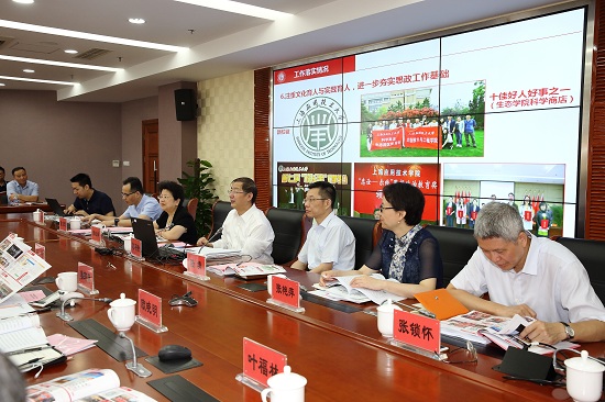 刘宇陆汇报说,全国高校思想政治工作会议召开以来,学校立足思想对标与全面覆盖,及时系统传达学习了全国和上海高校思想政治工作会议精神,在成立思想政治工作有关机构,推进“三大主体责任”层层落实,推进示范马克思主义学院建设、推进课程思政教育教学改革、强化文化育人实践育人、运用新媒体新技术激发思政工作活力、加强教师育德意识与育德能力建设、营造和谐向上的校园氛围等方面,均推出了一系列富有针对性和实效性的创新举措,取得了一定成效,党的建设成为学校发展的突出优势、大学文化成为浸润师生思想的重要载体、以应用型为特色的课程思政格局正在形成、“365青年成长计划”成为引领师生思想新园地。刘宇陆表示,校党委深入传达学习中央和市委有关意识形态工作责任制的系列文件,认真抓好意识形态工作责任制贯彻落实,在强化责任意识、层层压实责任、加强形势研判、管好校内阵地、建好管理队伍等方面推出了更加扎实的举措,进一步加强了学校意识形态管理工作。