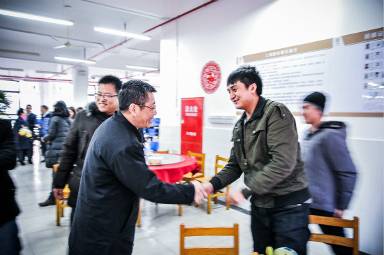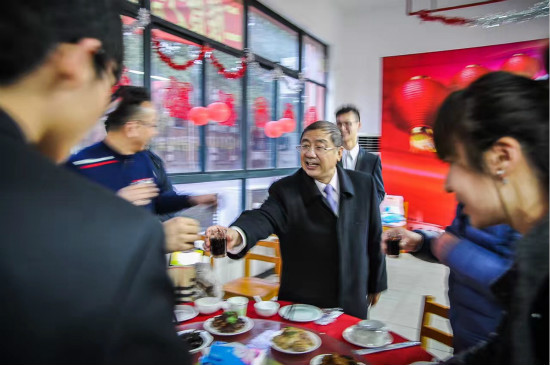茶话会后,校领导来到后厨慰问了一线的后勤工作人员,向大家致以新春的问候。