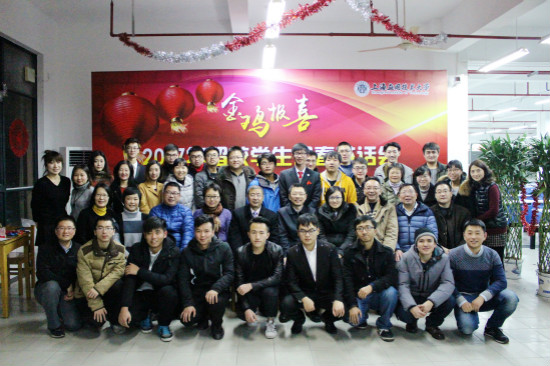 1月25日晚,“金鸡报喜”2017年寒假留校学生迎春茶话会在徐汇校区新食堂举行。校党委书记刘宇陆,校长陆靖,校党委副书记、副校长张艳萍与近50余名师生欢聚一堂,喜迎鸡年新春佳节。