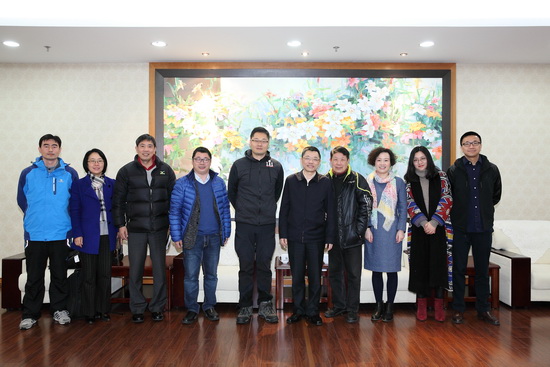 2月17日,校长陆靖、副校长叶银忠热情会见了前来我校考察调研体育工作开展情况的市教委体卫艺科处处长丁力一行。