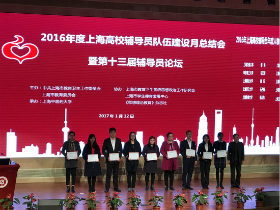 会上颁发了2016上海高校辅导员年度人物、2016上海高校辅导员职业能力大赛、第十三届辅导员论坛各个奖项。我校首次荣获上海高校辅导员团队素质拓展一等奖,理学院党总支副书记、副院长牛亏环喜获2016上海高校辅导员年度人物提名奖,机械学院辅导员强成文等荣获第十三届高校辅导员论坛征文三等奖。来自复旦大学、华东师范大学、东华大学的获奖辅导员代表就大学生思政教育、辅导员职业发展、技能培养等方面做了精彩的交流发言。