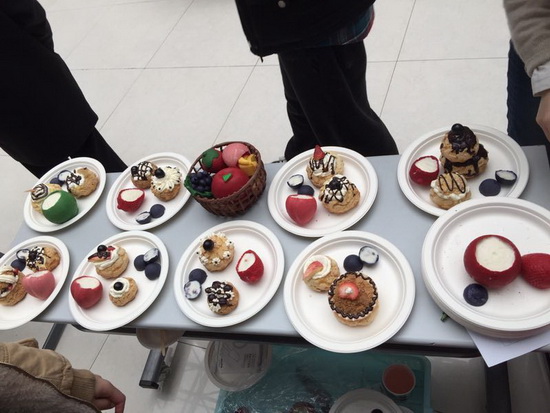 本次大赛邀请到上海商学院、上海城建职业学院和上海食品科技学校等三校参赛,征集到参赛作品13个。作品种类丰富、创意新颖、形式多样,各具特色,其中既有充满童趣的“海绵宝宝柠檬糕”、“奇趣森林”、“南瓜城堡”和“孩子们的五彩棒棒球”,也有充满了节日气氛的“圣诞的礼物”、“缤纷杯”、“水果篮子”;既有寓意美好的“红莓佳人”和“山楂树之恋”,也有重现经典的“咖啡杏仁蛋糕”“Miss Brownie”、“紫薯慕斯”和“百果香慕斯”等。参与评选的教师与学生在现场享受到视觉与味觉的满足,并为心仪的作品投上了宝贵的一票。