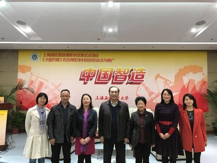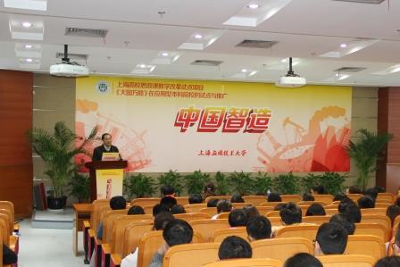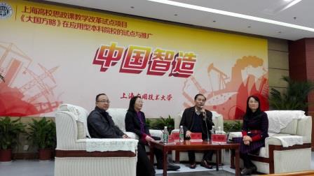 继校党委书记刘宇陆主讲的上海高校思政课教学改革试点课程《中国智造》首讲后,11月10日晚,《大国方略》原创团队成员参与主讲的《中国智造》在校再次精彩开讲。讲座前,刘宇陆专程会见本次讲座主讲人员,校党委副书记、纪委书记宋敏娟全程参与讲座。马克思主义学院部分教师、辅导员代表、第五届“英才计划”班学员共250余人聆听了讲座。