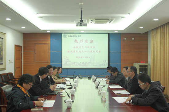 11月14日,校长陆靖、副校长叶银忠热情会见了来访的安徽信息工程学院副院长陈跃东一行。双方举行交流座谈。我校领导介绍了学校的整体办学情况,着重阐述了学校“十三五”期间提高应用型人才培养质量的总体思路,目前已经开展的应用型人才培养的探索与实践、大学生“三创”建设工作和第二课堂等。陈跃东表示,上海应用技术大学应用型人才培养体系建设非常成功,值得借鉴和学习,今后要进一步加强两校的交流与合作。