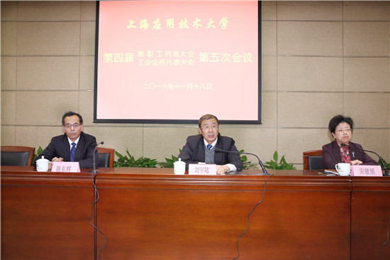 11月18日,上海应用技术大学四届五次“双代会”在奉贤校区隆重召开,校党委书记刘宇陆出席并讲话,党委副书记、校工会主席宋敏娟主持,副校长陈东辉作相关说明。学校第四届“双代会”代表及列席代表150多人参加会议。会议主要议程为审议通过《上海应用技术大学2017-2019年聘期岗位聘任办法》。