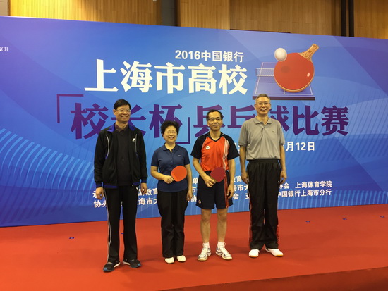 11月12日,由市教委主办的2016年中国银行上海市高校“校长杯”乒乓球比赛在上海体育学院举行。我校代表队由校党委副书记宋敏娟,副校长陈东辉、叶银忠、张锁怀组成,经过一天的激烈角逐,最终获得大赛第六名。宋敏娟以全胜战绩获得了“优秀运动员(全胜奖)”的殊荣。