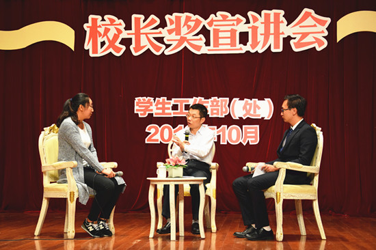 10月27日晚,校长陆靖出席由党委学生工作部主办的“日月之行,星辰大海”2016年校长奖宣讲会。党委学生工作部及各学院相关负责人、新生辅导员、各学院优秀学生代表及部分大一新生等280余人参加宣讲会。