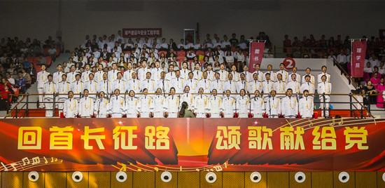 整场演出分为三个乐章:“征程回望”、“颂歌传唱”、“共筑梦想”。开幕式后,各参赛队依次登台,或激昂澎湃、或情真意切、或热情洋溢,精彩上演了《十送红军》、《四渡赤水出奇兵》、《保卫黄河》、《山丹丹开花红艳艳》、《我和我的祖国》、《走向复兴》、《在灿烂的阳光下》等耳熟能详、经久传唱的优秀革命歌曲。广大师生深情演绎这些红色歌曲,回首峥嵘岁月,仿佛亲临当年艰苦卓绝的长征之路,在歌声中追忆1936年10月22日中国工农红军陕北胜利会师。观看演出的师生们说,长征是中国贡献给世界的壮丽史诗,是一段永不磨灭的铁骨精魂的回忆,是我们生生不息的精神动力!大家对党怀着深厚的感情,用师生合唱的形式来纪念红军长征伟大胜利,不但是对革命英雄和先烈的缅怀、对那一段艰苦岁月的回忆,同时也是全校师生增进团结、增强动力、焕发新活力的过程,唱到情深处感人至深,唱到激昂时胸中激情澎湃。校大学生艺术团合唱团、校教工合唱团在正式比赛开始前奉献了精彩的暖场表演节目。