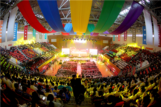 比赛在全场高唱《歌唱祖国》的雄壮歌声中圆满落幕。学校领导及嘉宾上台与演职人员合影留念。