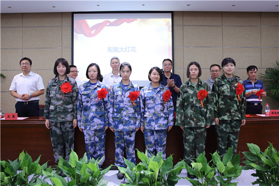 会上还宣读了入伍学生名单并佩戴红花,外国语学院的宁远航代表入伍学生发言,他表示入伍后会努力成为一名合格的战士为校争光;高职学院入伍学生宋婕的父亲代表学生家长发言,作为一名退伍军人,他的发言凝聚着家长对孩子的期望与关爱,希望孩子在部队的锻炼中,完成从精英到“精钢”的转变。