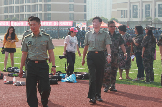 校领导与军训教官、带训辅导员亲切交谈,详细了解了新生军训情况和身体状况,要求带训辅导员积极做好服务和管理工作,做好新生开学第一课各项工作,引导新生勤奋学习,刻苦钻研,勇于实践,求实创新,为四年的大学生活打下良好的基础。