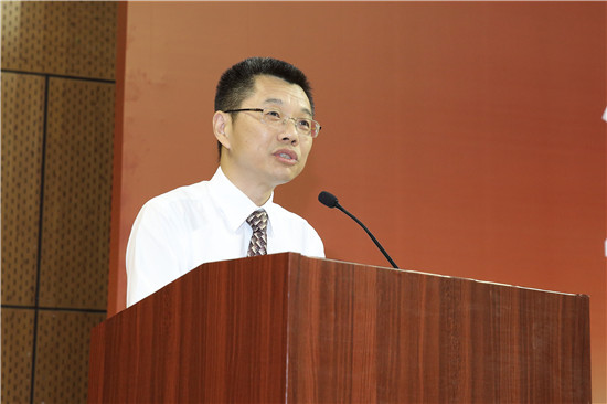 陆靖代表全校师生员工,对新同学的到来表示热烈欢迎,并祝愿同学们高扬理想之帆,播下人生希望的种子,在毕业季时收获金灿灿的果实!