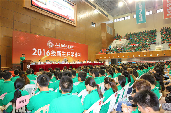 9月9日,上海应用技术大学2016级新生开学典礼在奉贤校区体育馆隆重举行,4699名新生参加开学典礼。校党委书记刘宇陆出席并为上海市研究生优秀成果(学位论文)获得者颁发证书,校长陆靖致辞。党委副书记、纪委书记宋敏娟,党委副书记、副校长张艳萍,副校长陈东辉、叶银忠、张锁怀出席。张艳萍主持典礼。