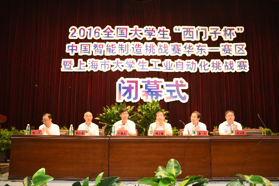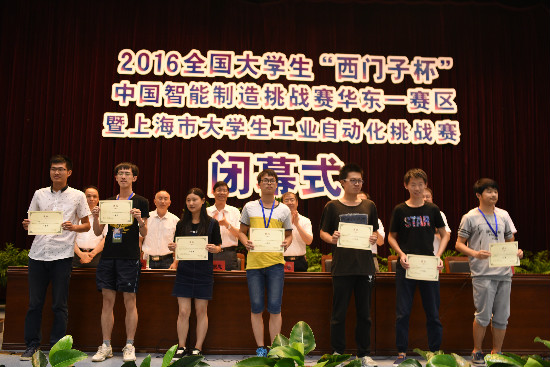 7月22日,由上海市教育委员会、教育部高等学校自动化专业教学指导分委员会、西门子(中国)有限公司和中国系统仿真学会联合主办,我校承办的2016年全国大学生西门子杯中国智能制造挑战赛华东一分区赛暨上海大学生工业自动化挑战赛闭幕式在我校奉贤校区举行。