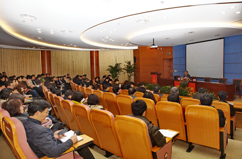为了更好地贯彻上海市教卫党委和校党委关于《关于认真学习宣传贯彻党的十八大精神的通知》,11月28日,学校“干部讲坛”邀请上海市社联党组副书记桑玉成来校做学习贯彻十八大精神专题辅导报告。校长卢冠忠出席讲坛,校党委副书记宋敏娟出席并主持讲坛。