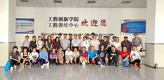 9月4日下午,上海科技干部管理学院教工一行50人到工创学院教育基地进行参观考察,工程创新学院党总支书记王清成、常务副院长徐兵、副院长吴雁热情接待来宾。王清成向来宾详细介绍了学院定位与办学特色,来宾一行参观了学院的大学生创新成果展示室、校企共建西门子自动化创新实验室、电子创新设计实验室、数控加工创新实验室、可视化实验室等,参观中各实验室相关负责人为来宾作详细介绍。参观结束后,来宾与学院教师进行研讨交流,纷纷表示将进一步加强与工创学院的合作,开展创新创业教育合作项目,共同促进“大众创业、万众创新”的战略。