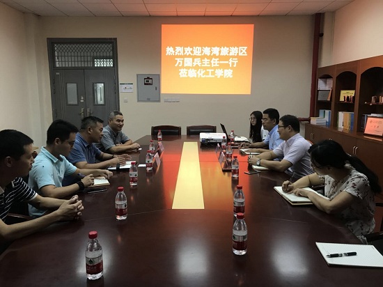 9月12日,化工学院院长胡晓钧、副院长刘振江热情接待了来访的奉贤海湾旅游区副主任万国兵一行,双方就海湾旅游区内的水质监测、河道治理等进行座谈。