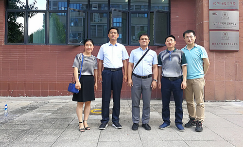 8月1日,化工学院院长胡晓钧一行赴贵州大学化学与化工学院考察调研其博士学位授权点的获批与建设情况。该校化学与化工学院、贵州省大环化学及超分子化学重点实验室主任陶朱教授、肖昕教授以及精细化工研究开发中心副主任薛伟教授、卢平教授等热情接待,双方开展交流座谈。
