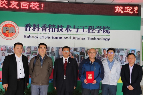 当天,学院还举行了“饮水思源•薪火相传”第四届校友结对仪式,校友导师和定向结对学生、校友代表、教师代表以及学生代表参加仪式。这一活动旨在利用优秀校友作为校外资源,创新行业技术人才的培养渠道。学院向4位校友导师颁发聘书,4对导师和定向学生一起,在“香料学院校友导师与定向学生结对协议书”上签字。