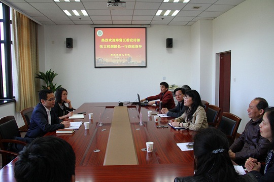 为进一步研究和传播“贤文化”,4月10日上午,奉贤区委宣传部副部长张文权一行前来马克思主义学院开展交流活动。马克思主义学院院长李国娟、常务副院长邱杰、党总支副书记杨燕华,从事传统文化研究的教师代表热情接待了张文权一行。