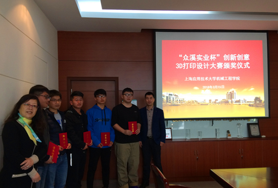 3月15日,由机械工程学院承办的“亚虹杯”和“众溪实业杯”设计大赛的颁奖仪式举行,上海亚虹模具制造有限公司经理方宏辉、上海众溪实业有限公司总经理马道义,机械工程学院院长张慧敏,副院长张珂、陈雷及相关教师聂文忠、“亚虹杯”和“众溪实业杯”获奖同学参加仪式。