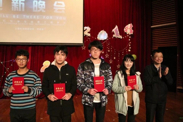 1月4日,计算机学院举行迎新晚会,校党委副书记、校长陆靖出席并为学院获奖学生颁发了“腾科杯”荣誉证书。