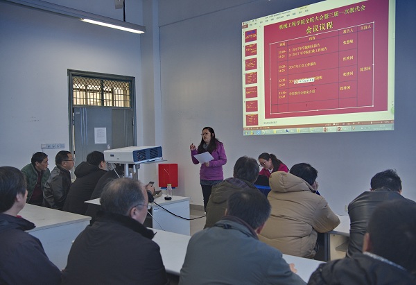 12月22日,机械学院全体教师和教代会代表欢聚一堂,以“凝心聚力、共谋发展”为主题举行学院全体教师大会和三届一次教代会。院长张慧敏向全院教师作了2017年度行政工作报告和财务工作报告,重点汇报了机械学院2017年在教学、科研、学生等方面工作及所取得的成绩,2018年工作计划及“工程中心”、“机械工程博士点”、“工程教育认证”、“应用型试点本科”等几项重点工作情况。院工会主席沈秀国向所有教师汇报了2017年度工会工作。院纪检员张建国代表学院财经小组对学院2017年度财务监督进行说明和汇报。与会教师审议并通过了相关报告。
