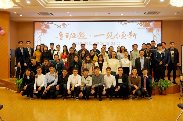 学工部长袁翔发表致辞,提出三个“新”:对师生共聚一堂辞旧迎新寄予美好祝福,对书院举办形式新颖的冷餐会给予赞赏,对党的十九大胜利召开将带领我们进入中国特色社会主义新时代充满信心。