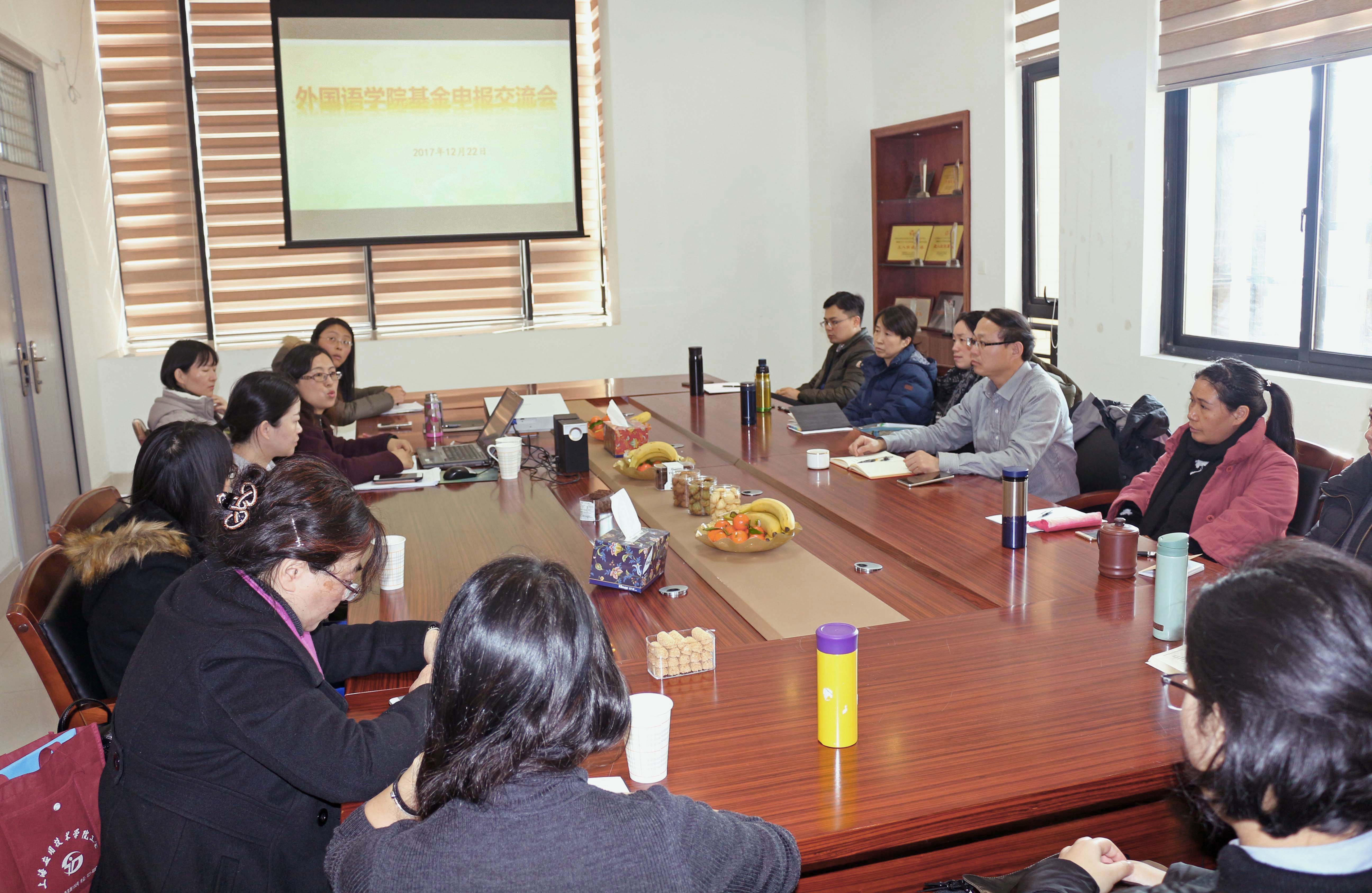 12月22日,外国语学院召开2018年国家社科基金及教育部人文社科基金项目申报交流会。院长陈家旭、副院长于静及学院相关教师参会,于静主持。