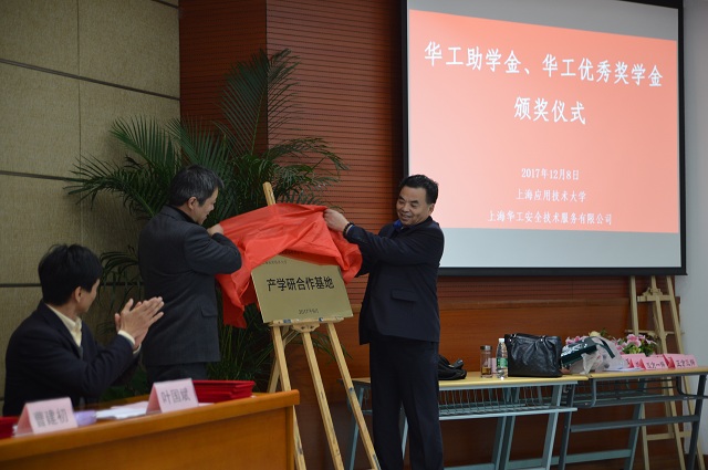 12月8日,城建学院举行首届华工优秀学生奖学金和华工助学金颁奖典礼。城建学院院长丁文胜,上海华工安全技术服务有限公司总经理曹建初、副总经理叶国斌出席。叶国斌介绍了华工奖学金和助学金设立初衷,展望了安全工程专业的美好未来,鼓励学子认真学习、为行业发展和公共安全作出自己的贡献。曹建初签署奖学金捐赠协议,并和丁文胜一起为校企产学研合作基地揭牌。