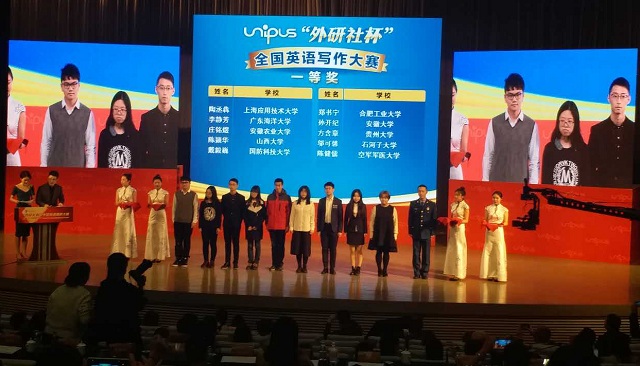 2017年“外研社杯”英语写作大赛全国总决赛于12月8日落幕,我校外语学院老师康添俊指导的两名同学斩获奖项。其中陶丞犇夺得了全国一等奖,田颖夺得了全国二等奖。此前,这两位同学在上海赛区复赛中夺得了特等奖,代表上海晋级了全国总决赛。