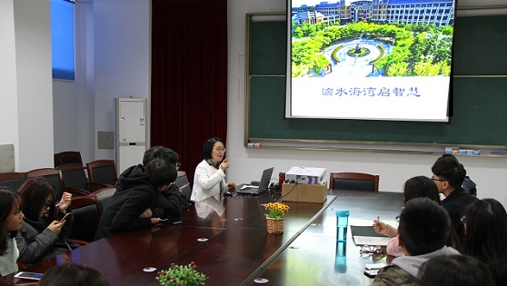 11月16日,《景观物语草木关情——文化校园九讲》系列课程走进滴水海湾广场,人文学院党总支书记周文以“滴水海湾启智慧”为主题,结合广场中各景观展开详细阐述。她表示广场以海湾为依托,以水滴为主题,学生们就像小水滴一样,在大学这个海湾学习、交流、成长,毕业之后融入社会、汇入大海,体现了合作、共享、融入的概念。在“水跃龙腾”主题雕塑前,她结合中国水文化与同学们交流了“上善若水、厚德载物”传统美德和道德境界。