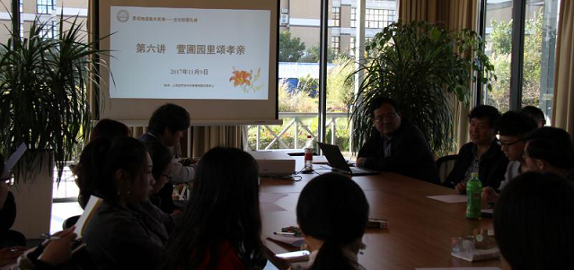 11月9号下午,《景观物语 草木关情》课程第六讲由生态学院党总支书记曹扬主讲,主题是“萱圃园里颂孝亲”。曹扬阐述了萱草的观赏价值和食用、药用价值;重点讲述了萱草的文化意蕴:萱草有寄托思念之情的作用,如古代游子远行前,为慰藉母亲对自己的思念,将自己亲手种植的萱草栽种于母亲的北堂居室,使母亲见物如见己,并以此将母亲尊称为“萱堂",故萱草为中国的母亲花。因此萱草也带上了传统孝文化的人文色彩。