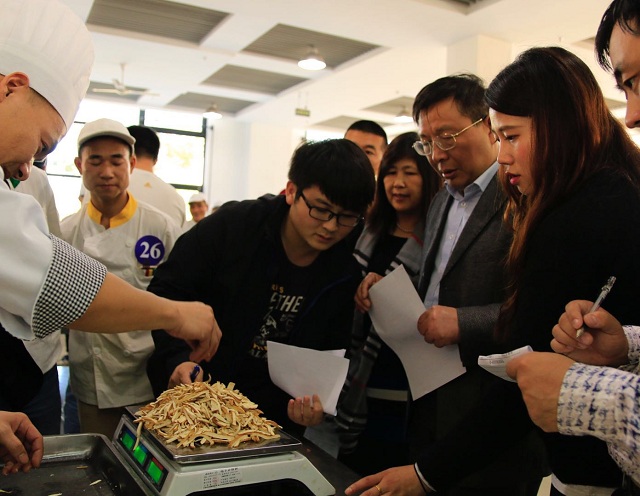 10月26日下午,学校举办了“2017年餐饮岗位技能大赛”。校工会常务副主席张淑梅、后保处处长翁德明、学工部教师代表、团委教师代表、校伙管会学生代表等出席活动现场。赛前翁德明致辞,希望食堂员工们在赛场上展现后厨风采,提高厨师专业技能。