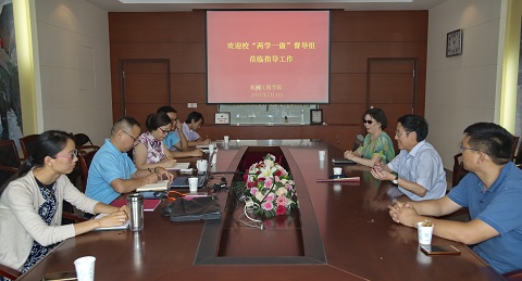 机械学院院长张慧敏向校“两学一做”督导组汇报了学院近期来的工作及暑期工作计划。学院党总支书记程道来就学院围绕中心抓党建、做好党建促中心方面做了汇报。学院其他相关负责人也就各自工作做了汇报。