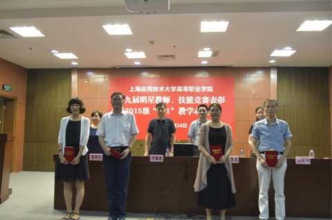 会上进行了隆重的颁奖仪式并表彰了高职学院2016-2017年度在全国、市级、区级各类技能竞赛中获奖的师生。张东民对第七届“明星教师”获得者及在各类技能竞赛中获奖的师生表示衷心祝贺,希望高职学院坚持让技能竞赛成为师生技能教育成果展示的平台,通过大赛,为广大师生创设平台,让每个勤奋努力的师生都有机会展示自己的才华和能力;以赛促教,不断提升高职职业教育发展水平。