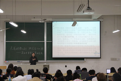 5月4日晚,马克思主义理论宣讲团举办了以“点亮理想之灯,坚定前行之路”为主题的宣讲活动。马克思主义学院周妤教授领衔,马克思主义理论宣讲团指导教师马光霞、黄美菊与宣讲团朱红鹏、刘静、桂宗广三位同学联袂主讲,来自全校各学院100余位同学现场聆听了此次宣讲。