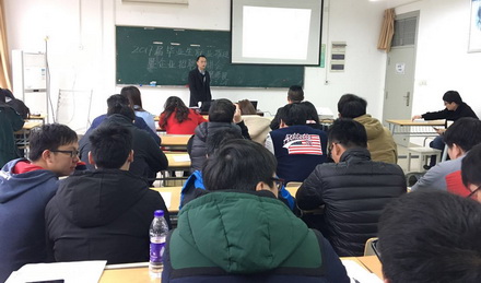 3月24日,理学院举行2017届毕业生就业推进暨专场招聘宣讲会,多家企业应邀来宣讲。理学院院长邱翔,党总支副书记、副院长牛亏环,相关辅导员及2017届全体毕业生共同参加招聘宣讲会。