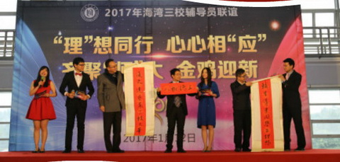 1月12日下午,主题为“‘理’想同行、心心相‘应’、齐聚‘师’大、金鸡迎新”的奉贤海湾三校辅导员新春联谊会在上海师范大学体育馆举行。上海师范大学党委副书记、副校长葛卫华,华东理工大学副校长胡宝国,我校党委学生工作部部长袁翔及三所高校的200多名辅导员出席了联谊活动。