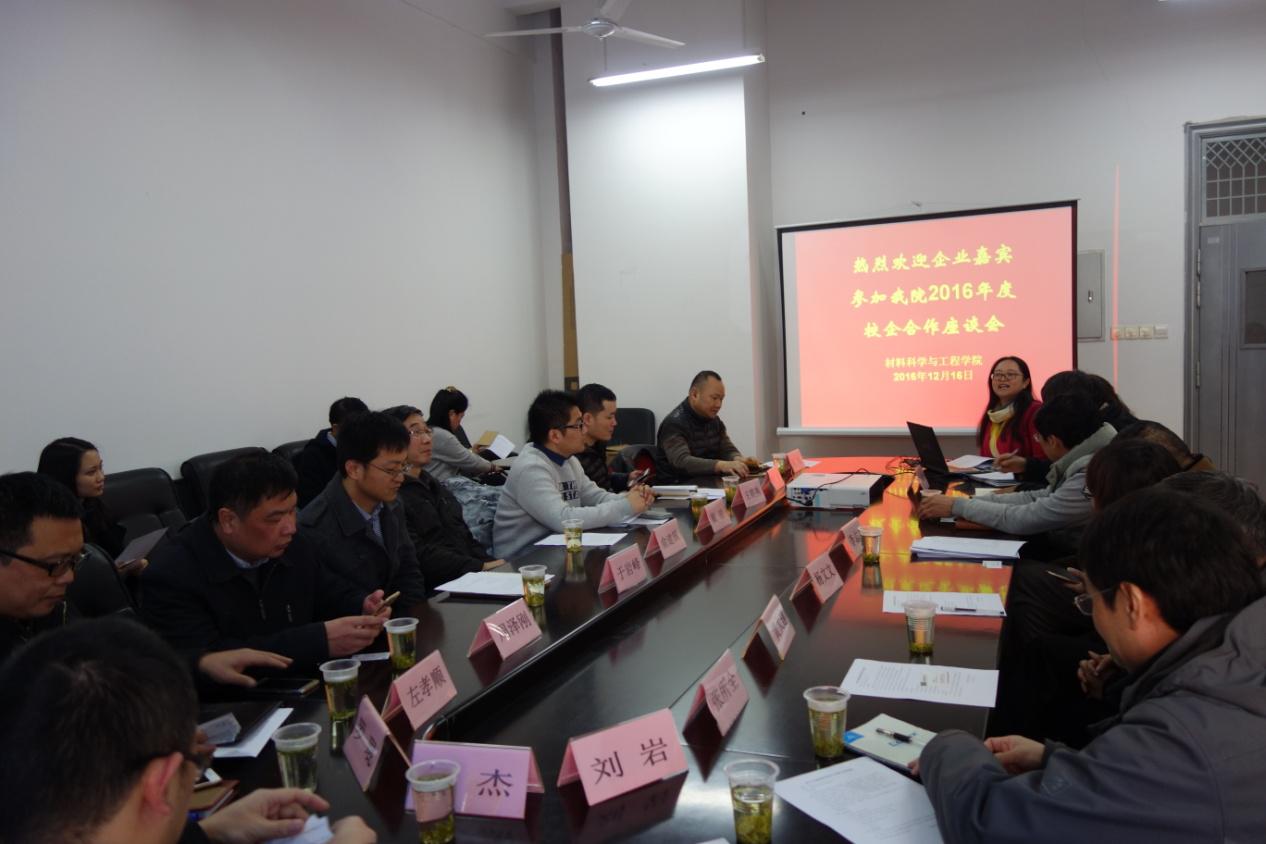 日前,材料学院举行2016年产学研工作会议,学院党总支书记田怀香,副书记、副院长毕劲松,副院长贾润萍、章冬云参会。上海英科实业有限公司等十余家企事业单位负责人出席会议。