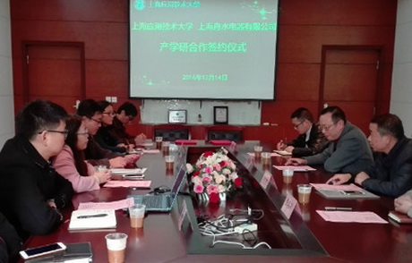 12月14日,上海舟水电器有限公司总经理金海平一行来机械学院参加产学研合作签约仪式,机械学院院长张慧敏、副院长张珂、朱柳娟、陈雷及机械学院相关教师参加会议。