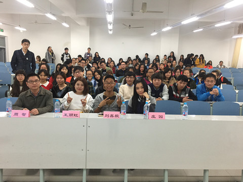 11月15日晚,人文学院举行以“我们的大学”为题的学长学姐校友交流会,这是人文学院新生入学教育系列活动之一。活动邀请了2名即将毕业的大四学生和3名已经毕业的校友。作为人文学院上一届的学生会主席,沙先月向大家讲述了大学生活中让她最为记忆深刻的几件事,用亲身体验告诉了新生坚持的重要性。学长为新生讲述了在支教、在迪士尼的工作经历,告诉新生们机会只给有准备的人,应该明确自己学业生涯的方向。最后,作为曾经的毕业生,目前回到母校从事辅导员工作的庄园老师用流利英语和新生们分享了她的国外生活以及申请留学的条件,并鼓励新生们有梦想就要勇敢去追。